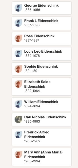 Anyway - in the next chapter we’ll return back to the fork in the road of Carl and Clara Eidenschink and start following the path of Clara Nellie’s ancestry.
