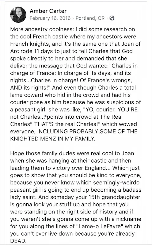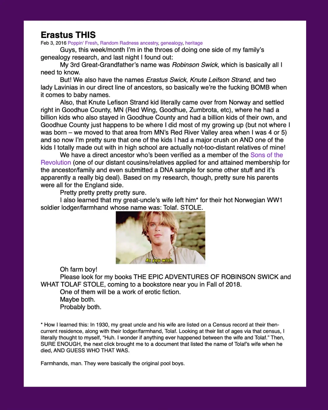 And then I think of how lovely and moving it was a few years ago when I talked about my paternal grandmother on my Facebook page and how I didn’t really know anything about her because she died before I was born. That led to this really amazing moment of all my aunts and cousins telling me all this great stuff about her and witness them sharing and laughing about their memories of her with each other, too. I will never forget that experience, and how one Facebook post made me feel so much closer to that part of my family and the grandmother I never got to know. I hope that, by sharing all of this great stuff I’ve learned about my ancestors, it can be really fun and edifying and maybe even healing for other family members, too. And maybe for you, too? The thing about ancestral research is that people rarely want to hear about yours, but once you start talking about any cool stuff you’ve found, suddenly everyone you know has signed up on ancestry dot com and has started doing their own genealogical digging.