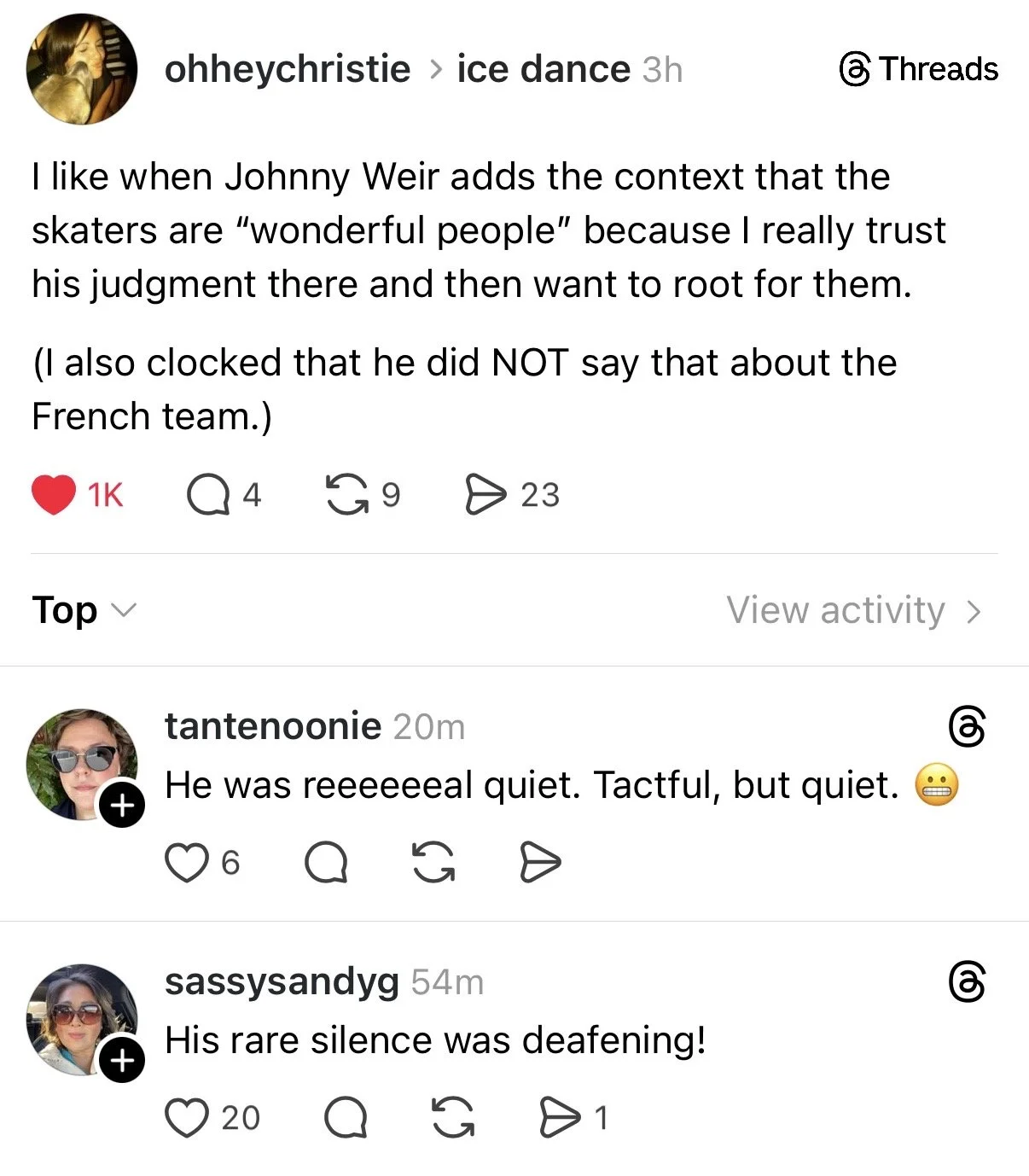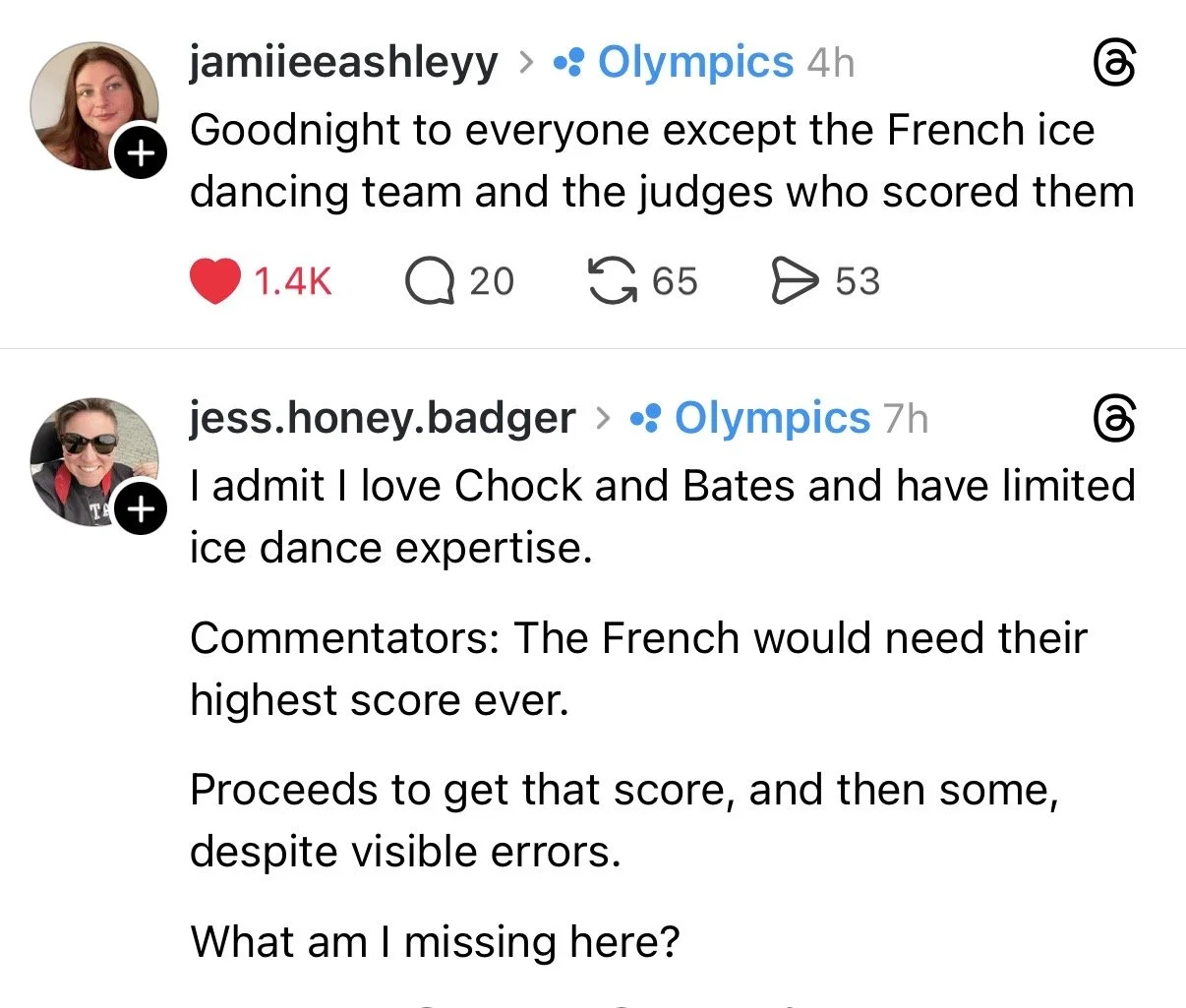 I mentioned in Friday’s Weekday Coffee Break™ that I was going to save writing about this for the Weekend Coffee Break™ because I had a feeling that something would happen per the judges scoring, but unfortch for us, that something was that US Figure Skating announced it won’t appeal Chock and Bates’ ice dance results. Which sort of makes this run-down land with a dull thud, which is something I will ALSO personally hold against US Figure Skating and these French villains. So while Chock & Bates are handling all of this with a lot of grace, that’s not me, baby!!! I never let a grudge go - I’ll make it my life’s mission to ensure that these Frenchies never have their gold medal mentioned without it also being brought up in the same breath that the judges rigged it on their behalf and that there was a likely an under-the-table deal the whole time. After all, wouldn’t be the first time that’s happened!